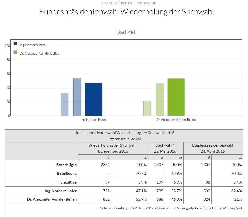 News aus der Gemeinde Bad Zell hat gewählt 8. Dezember 2016 ubbz Ergebniss der Bundespräsidentenwahl 4.12.2016 Gefällt mir Wird geladen …