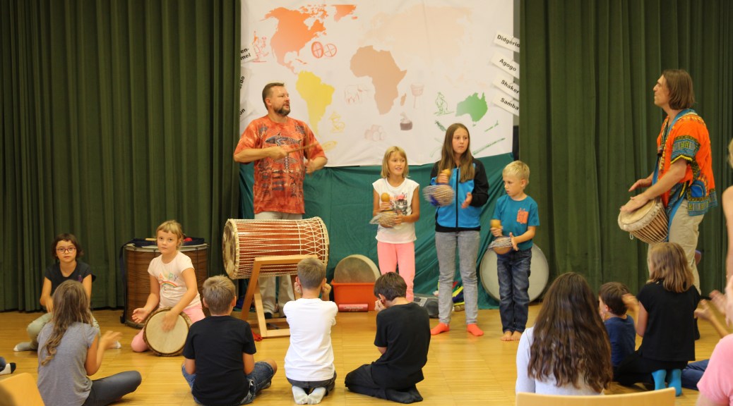 DAS WAR DIE TROMMELREISE UM DIE WELT – und sie hat den Kindern sichtlich Spass gemacht!