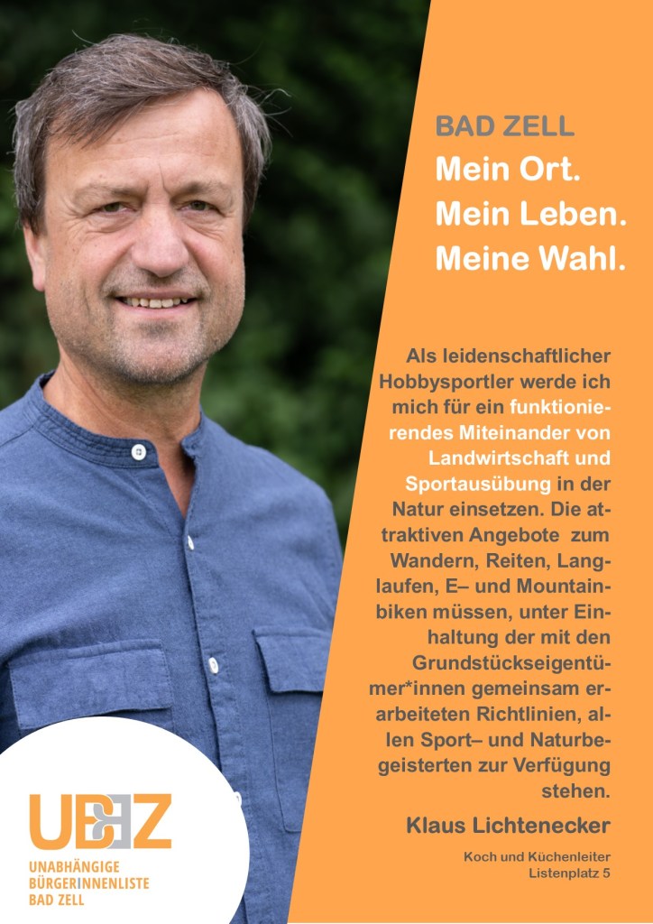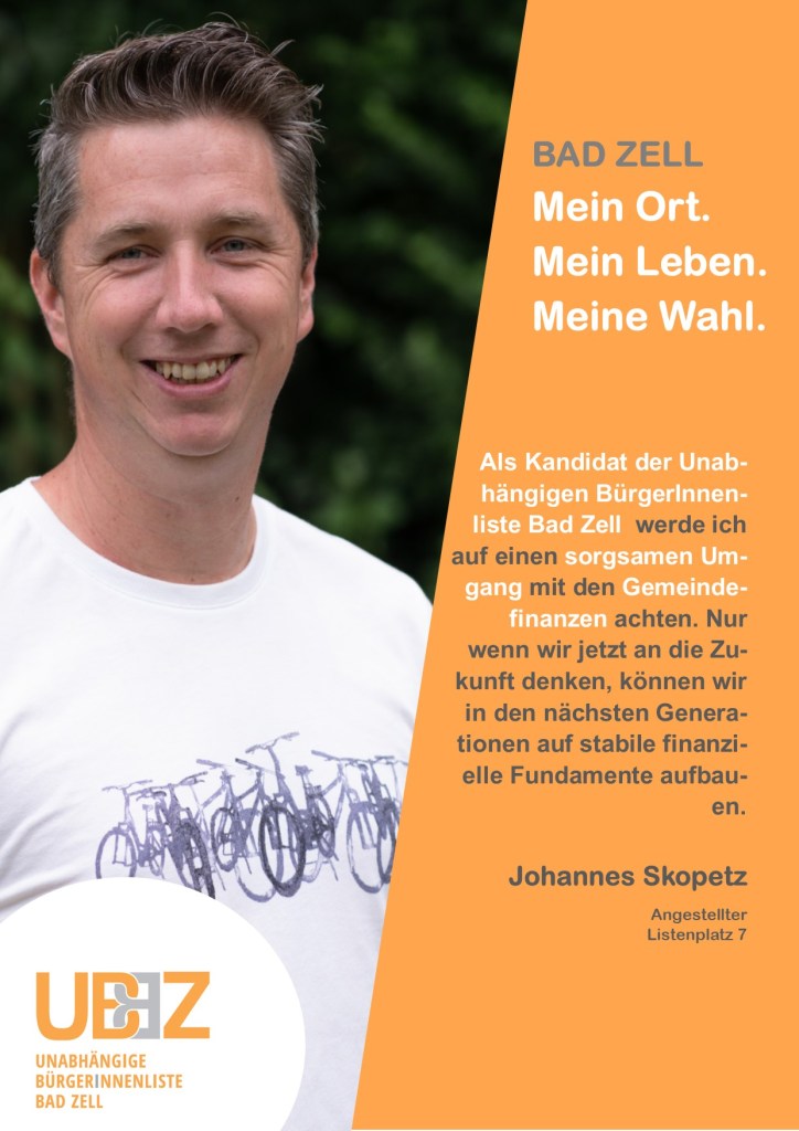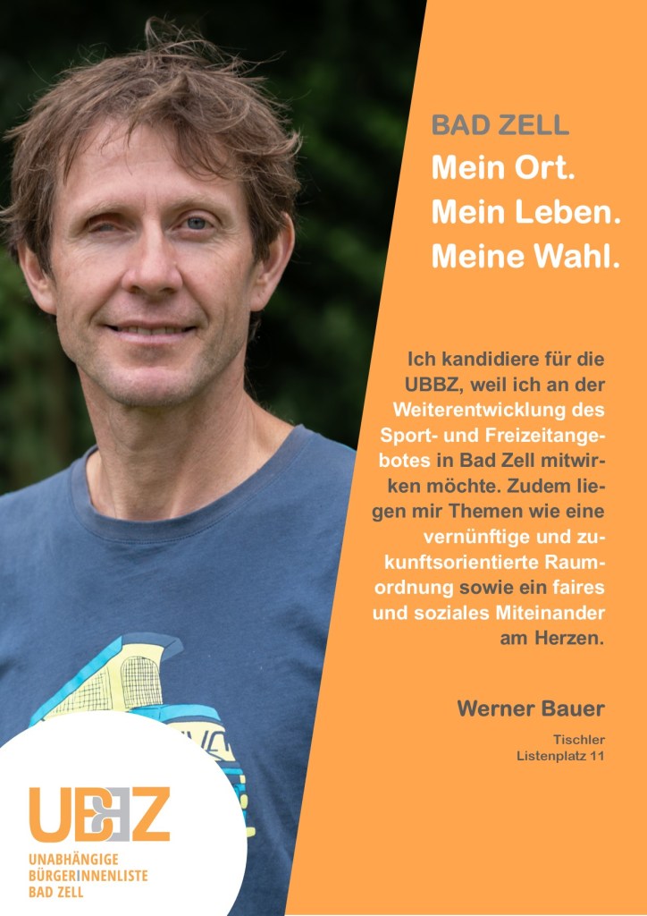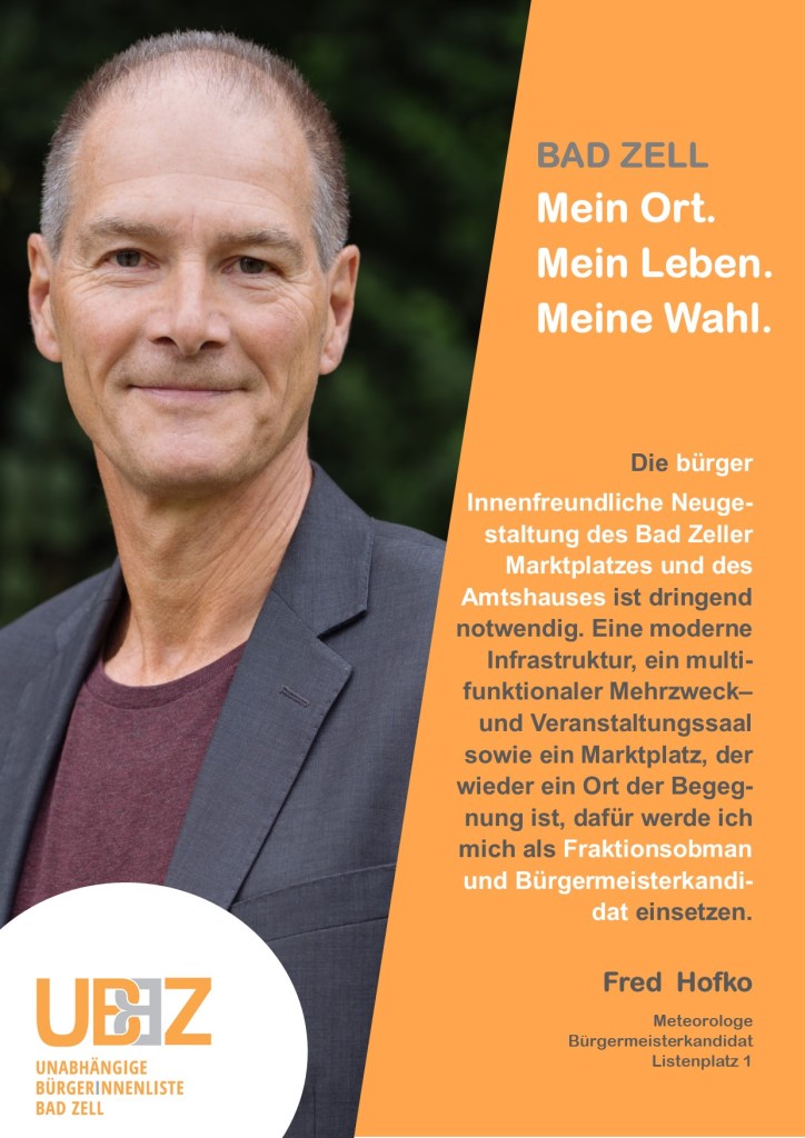Die Unabhängige BürgerInnenliste Bad Zell (UBBZ) tritt bei der Gemeinderatswahl am 26.September 2021 wieder an. Fred Hofko bewirbt sich erneut um das Amt des Bürgermeisters von Bad Zell.